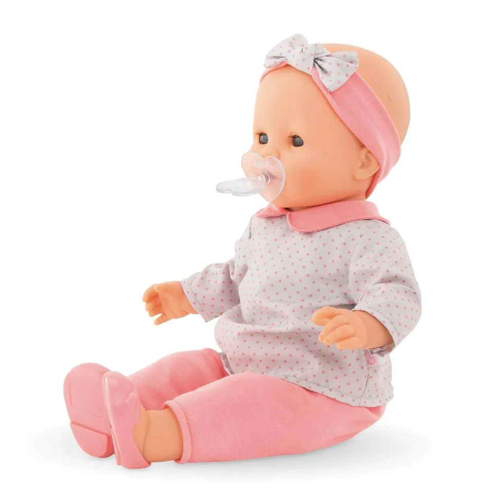 Accessoires pour poupons indispensables, les tétines permettront de calmer votre poupon Corolle lorsqu’il pleure !Comme papa et maman, il vous faudra être bien équipé pour répondre aux besoins de votre bébé ! Et parmi les accessoires à avoir dans votre panoplie d’apprenti parent, la tétine devra toujours être à portée de main.Cet ensemble comprend deux tétines, une rose transparente et une blanche transparente avec un embout en forme de coeur, qui vous serviront donc à consoler les gros chagrins de votre grand poupon Corolle. Il vous faudra bien deux tétines, au cas où, il en faut toujours une de secours !Ces deux tétines sont adaptées aux poupons Corolle de 36 et 42 cm.Découvrez en complément sur notre site, ces poupons sous la collection mon grand poupon Corolle.