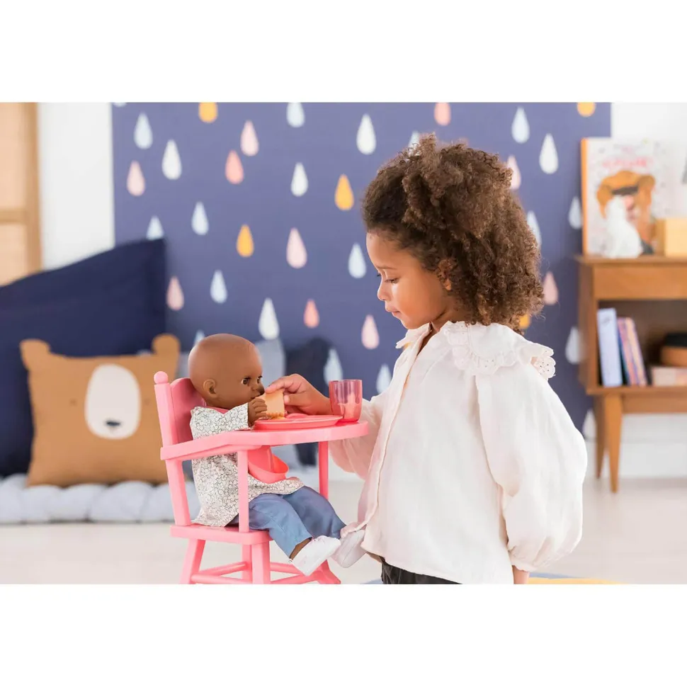 À table ! La Chaise Haute est adaptée aux grands poupons de 36 à 42cm Corolle. Elle est 2 en 1 : elle se place en position haute comme celle d’un vrai bébé ou en position basse pour faciliter le jeu assis. Sur sa petite tablette, on peut poser le repas de son grand poupon.Plus que jamais, les enfants vont adorer donner à manger à leur grand poupon !