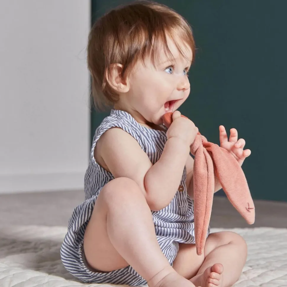 Soulagez les poussées dentaires de bébé avec anneau de dentition lapin en silicone couleur terracotta de la marque Kaloo.