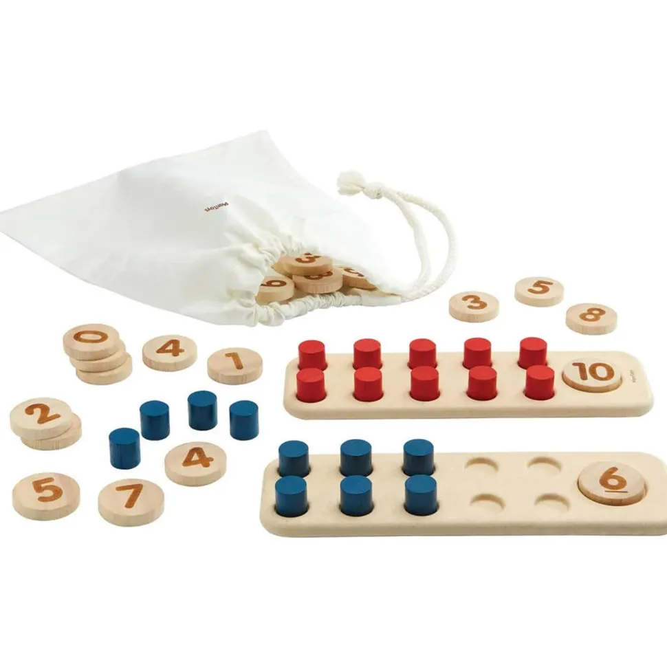 Ce jeu éducatif de la marque Plan Toys aide les enfants à développer leur compréhension de l’addition, de la soustraction et de la multiplication de base avec les nombres 1-20.