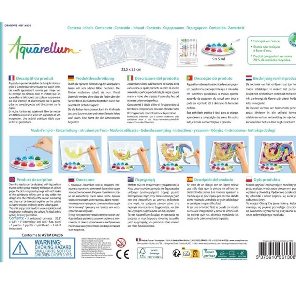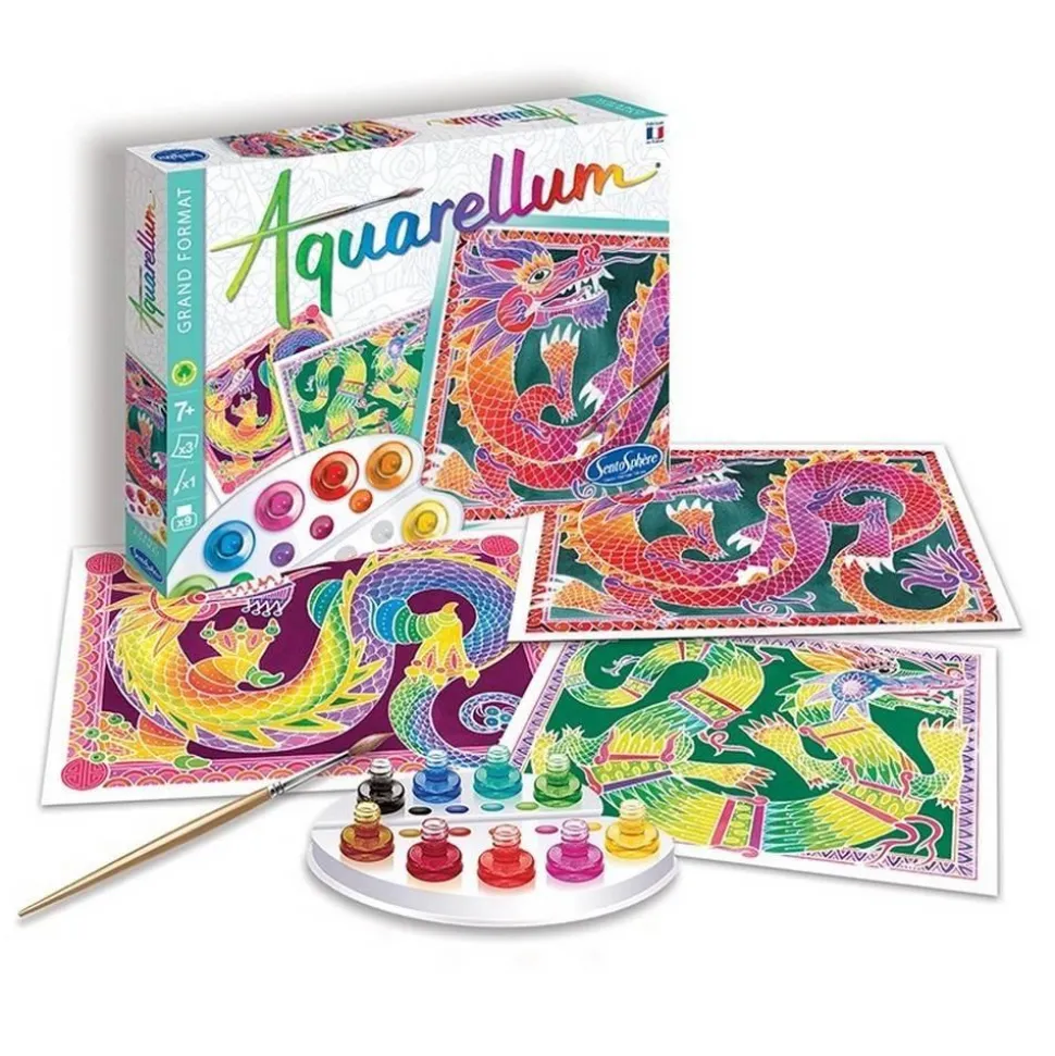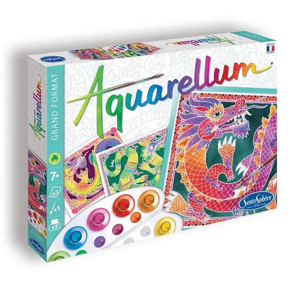 La technique de sertissage permet de réaliser de très jolis tableaux : le pinceau ne déborde pas, les motifs ressortent dès que l’on passe les encres et les couleurs surprennent par leur intensité.Les couleurs ont été sélectionnées pour s’harmoniser entre elles et permettent à l’artiste de peindre tout en laissant libre cours à son imagination : le résultat est toujours réussi.Contenu de la boîte :- 1 palette avec 9 flacons d’aquarelle – 1 pinceau de très grande qualité – 3 tableaux de 25 cm par 32.5 cm en velin serti.
