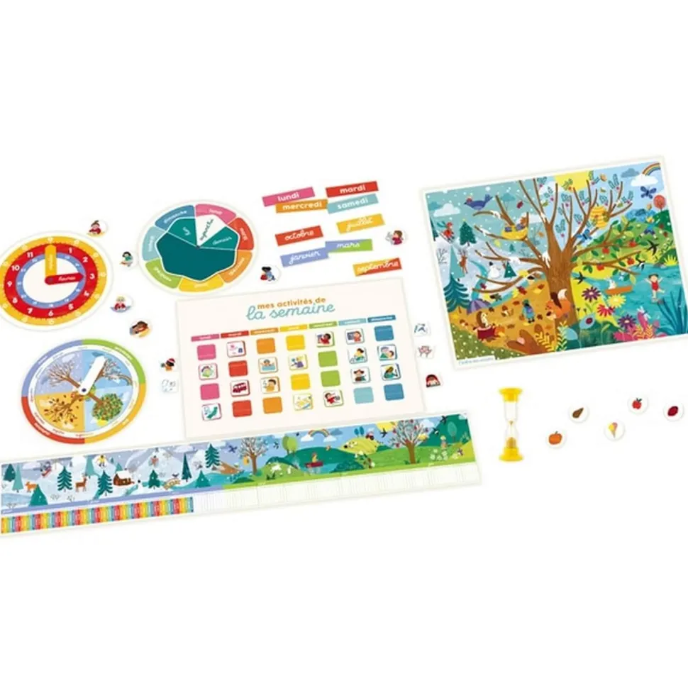 Ce grand coffret propose un matériel original pour accompagner les découvertes de l’enfant autour de l’heure et du temps. Des activités variées et un guide très complet abordent la journée, la semaine, les mois, les saisons, l’année… Par le jeu, le parent accompagne son enfant vers l’autonomie, à son rythme.