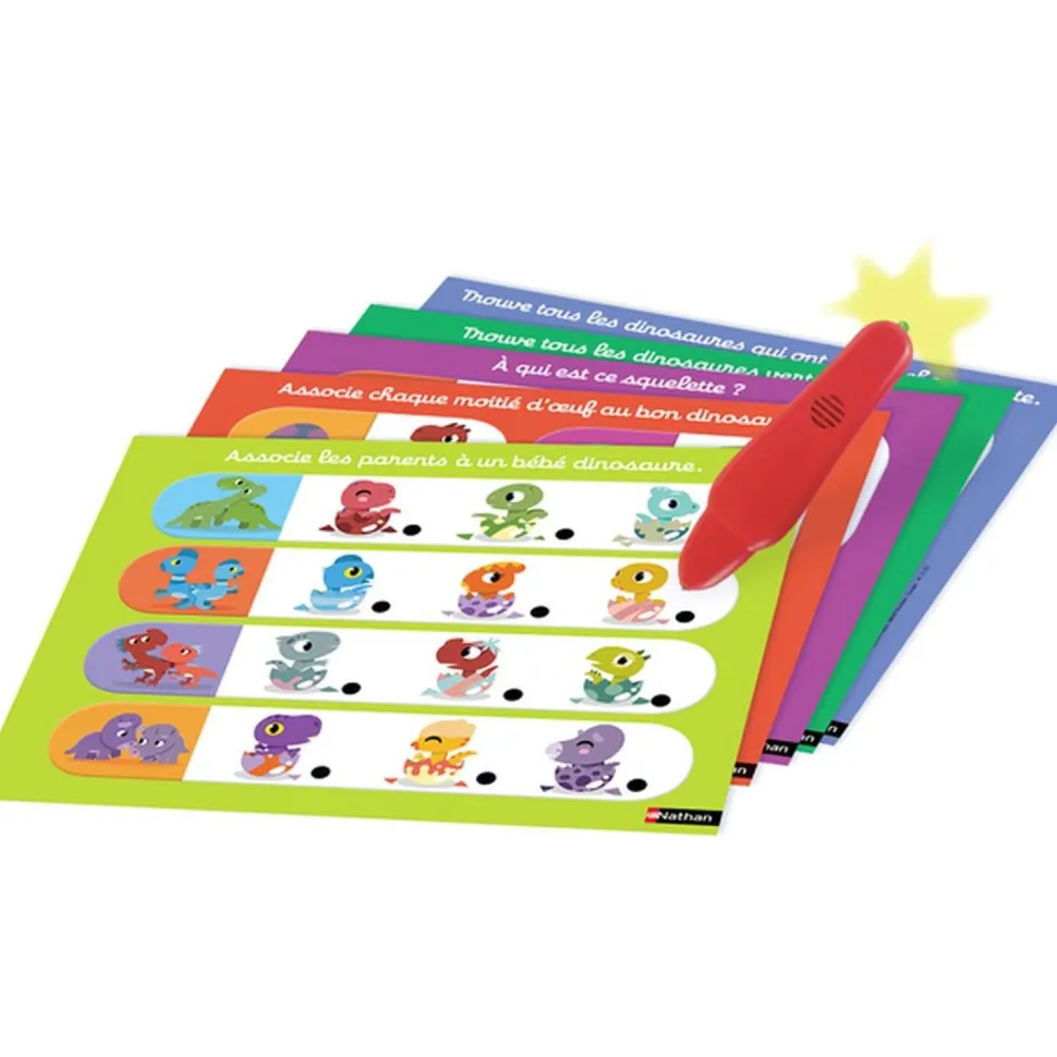 Les enfants aimeront les couleurs magnifiques des planches et la thématique des dinosaures. Les parents aimeront le système d’autocorrection qui permet à l’enfant de comprendre seul.