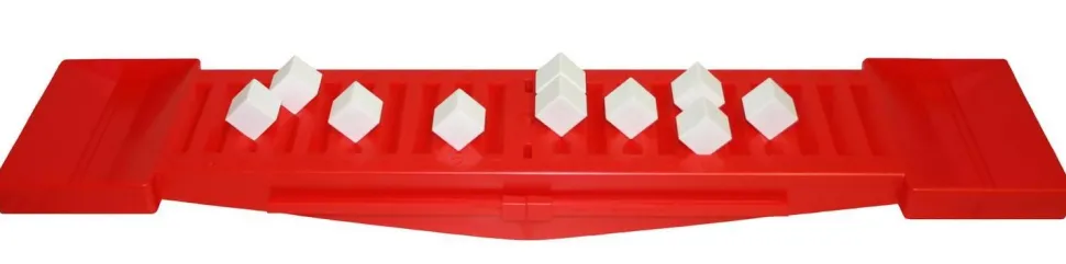 Sur la balance à bascule… Un équilibre peut être démontré facilement. Pour cela, vous pouvez utiliser les 10 cubes de poids fournis ou d’autres objets dont la grande surface offre suffisamment de place. Les gravures, graduées de 1 à 10, permettent également d’expliquer les additions, et les deux plateaux sont suffisamment grands pour les jeux de pesée.