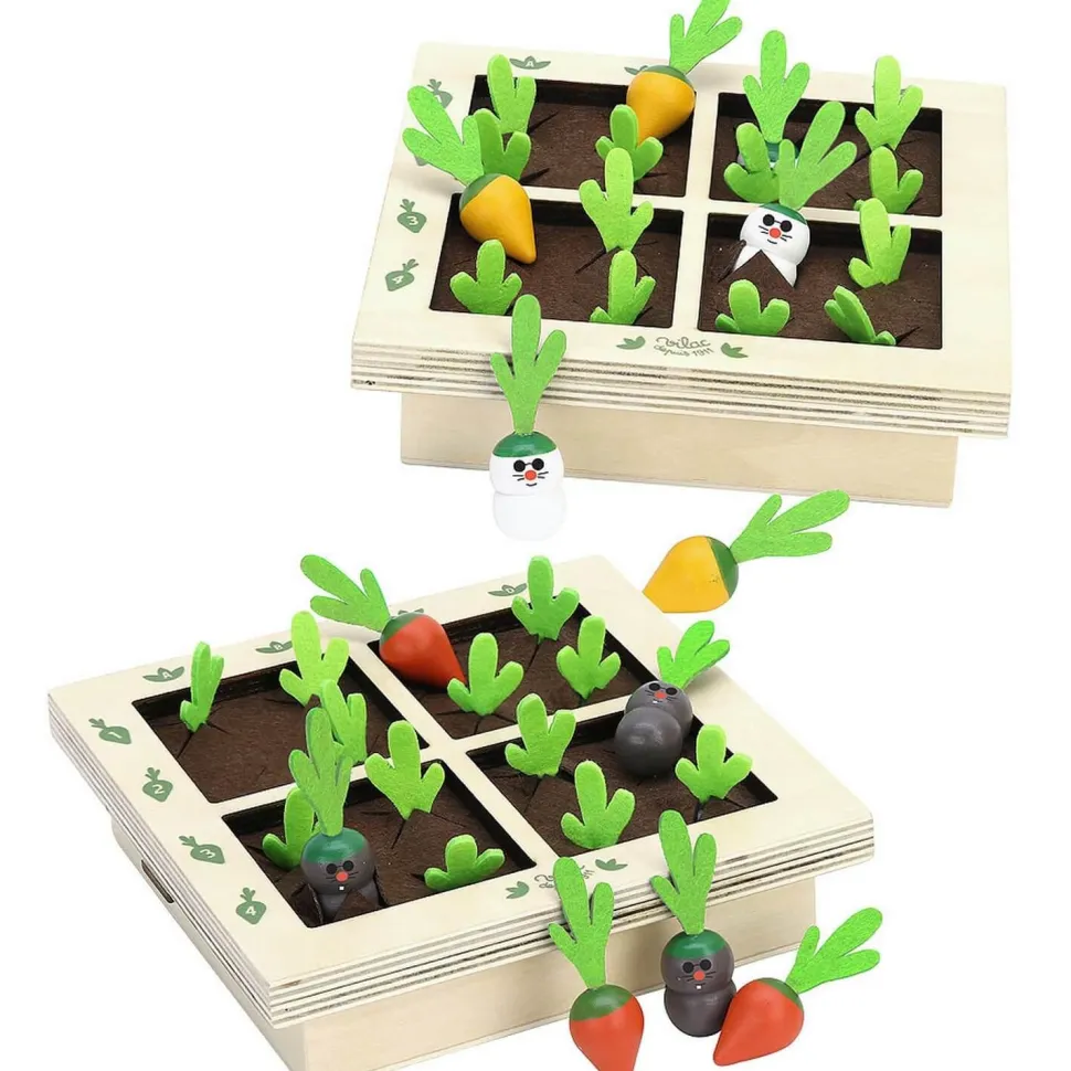 Ce jeu est idéal pour la mémoire et l’observation de votre enfant. Cette version unique contient des carottes jaune et orange et des taupes pour brouiller les pistes.