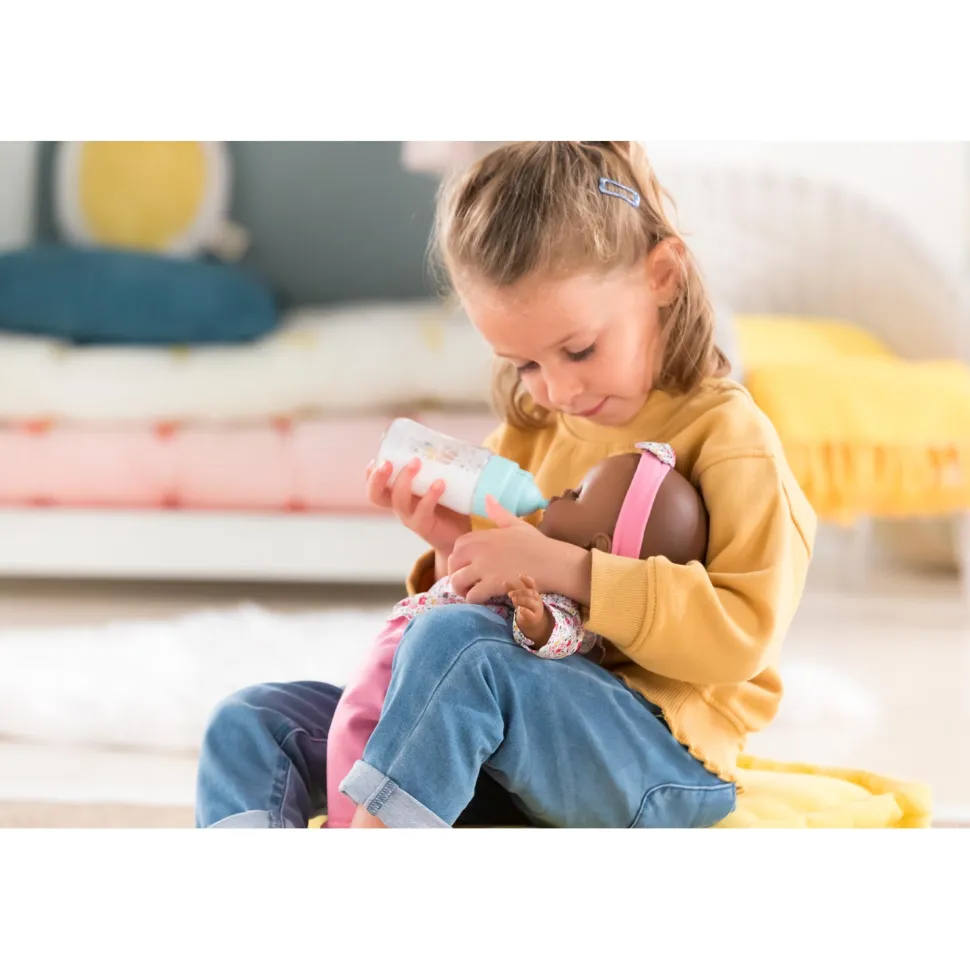 Idéal pour donner à manger à son grand poupon de 36 et 42 cm, le biberon sonore possède 3 sons pour varier les scénarios de jeu. Facile d’utilisation, l’enfant peut avec son biberon entendre son poupon pleurer, rire ou encore sucer la tétine de son biberon, comme un vrai bébé.