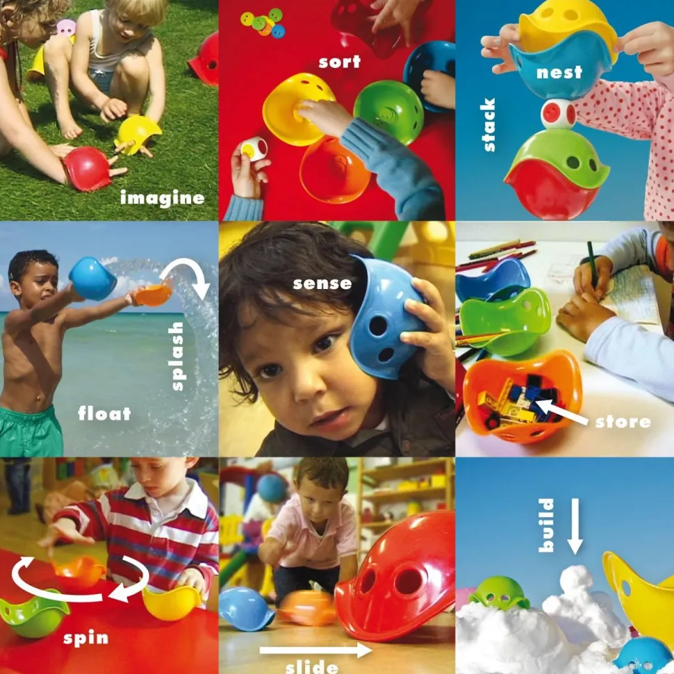 … Bilibo a remporté de nombreux prix, car c’est un jouet particulièrement innovant et polyvalent, disponible en deux tailles : s’asseoir et rouler, se balancer, se cacher, s’asseoir, comme jouet de sable, dans la pataugeoire et dans la neige… Bilibo offre des heures de plaisir, à l’intérieur comme à l’extérieur, toute l’année. Sa forme de coquillage magique aux couleurs vives éveille la curiosité, stimule l’imagination et développe la motricité et l’équilibre de base des enfants de manière ludique.