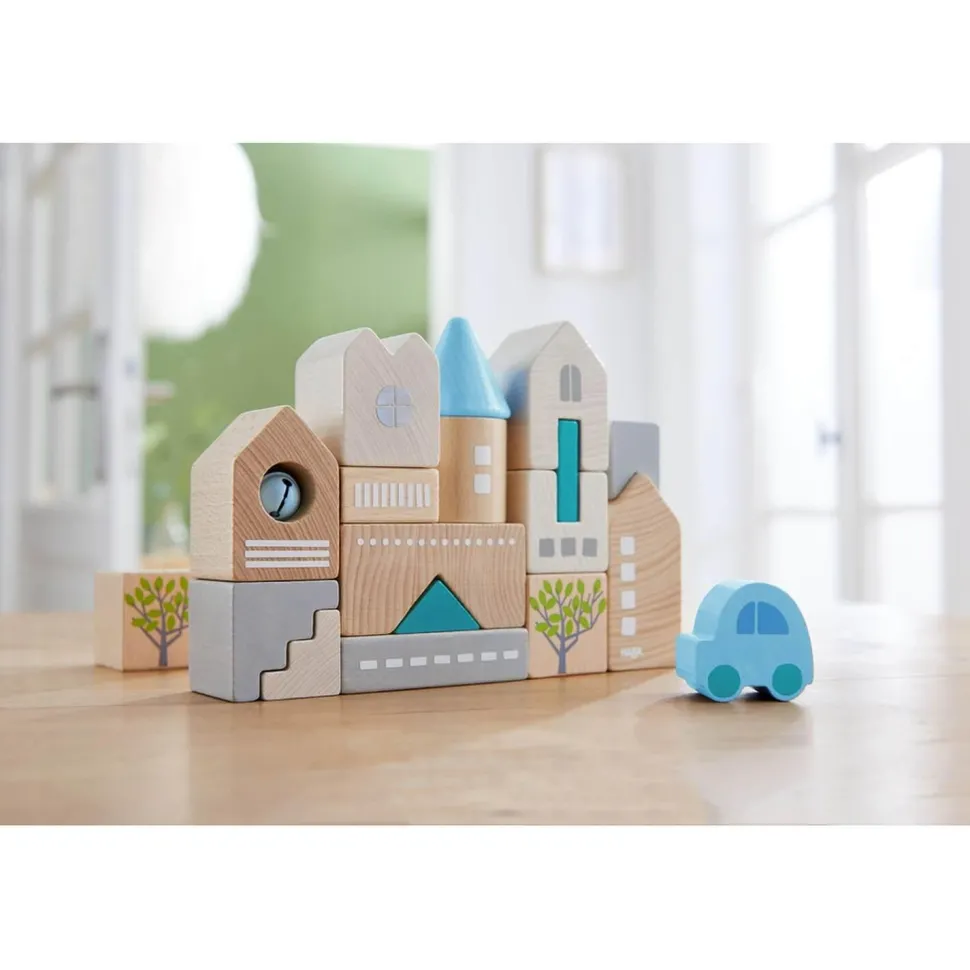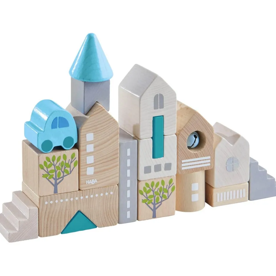 Haba a développé un jeu de blocs de construction qui permet à votre enfant de construire une petite ville.