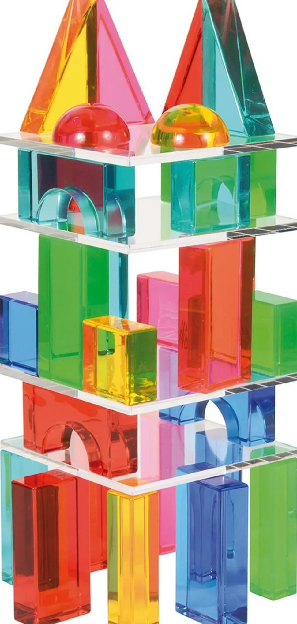 Blocs de construction transparents aux couleurs vives et éclatantes. Les blocs de construction Geo, faciles à manipuler, sont fascinants à manipuler et à construire grâce à leur surface brillante et leurs reflets translucides aux superbes effets de couleur. Avec six formes différentes et quatre plaques carrées, les enfants peuvent créer des structures translucides à plusieurs niveaux. Matériau : acrylique. Dimensions : plus grande pierre : 6,6 x 3,3 x 1,7 cm, plaque : 10 x 10 x 0,4 cm. A partir de : à partir de 3 ans.