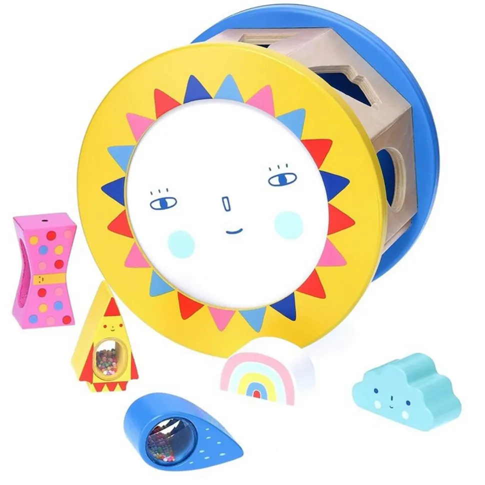 Embarquez dans l’univers Kawai chic de Suzy et craquez pour cette boite à formes toute ronde et pleine de douceur qui favorisera l’éveil des petits. Un côté jour, un côté nuit, un soleil tambour ! Eh ! Oooooh ! Surprise… Les formes à encastrer font des petits bruits rigolos. La plus craquante est certainement la goutelette, dotée d’un kaleidoscope trop chouette ! Conçue par notre équipe de mamans créatrices et de papas joueurs, cette boite à forme favorisera l’apprentissage de la motricité fine et de l’observation.