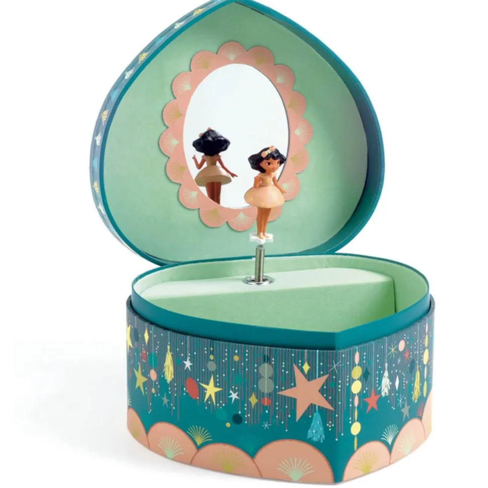 Découvrez la boîte à musique et à bijoux Happy Party de la marque Djeco. Cette boîte en bois en forme de coeur joliment illustrée permet aussi de ranger ses bijoux secrets.
