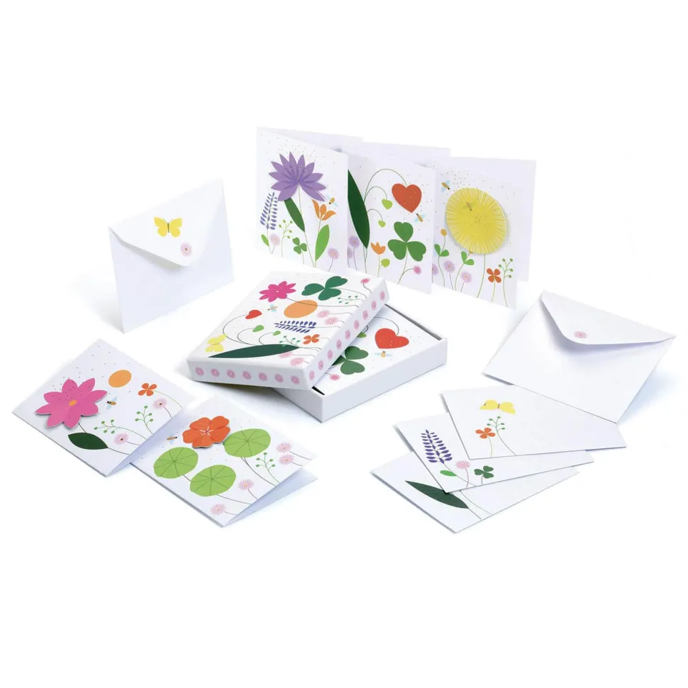 Contenu : 1 boîte cartonnée et illustrée comprenant : 10 cartes (2 x 5 modèles – 9 x 11 cm), 10 enveloppes (2 x 5 modèles – 11,5 x 9,2 cm).