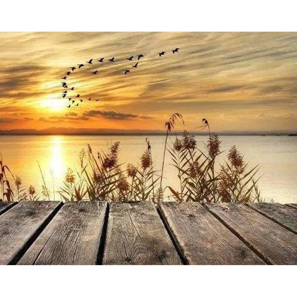 Caractéristiques détaillées : Broderie diamant : Au bord du Lac – sans chassis en bois