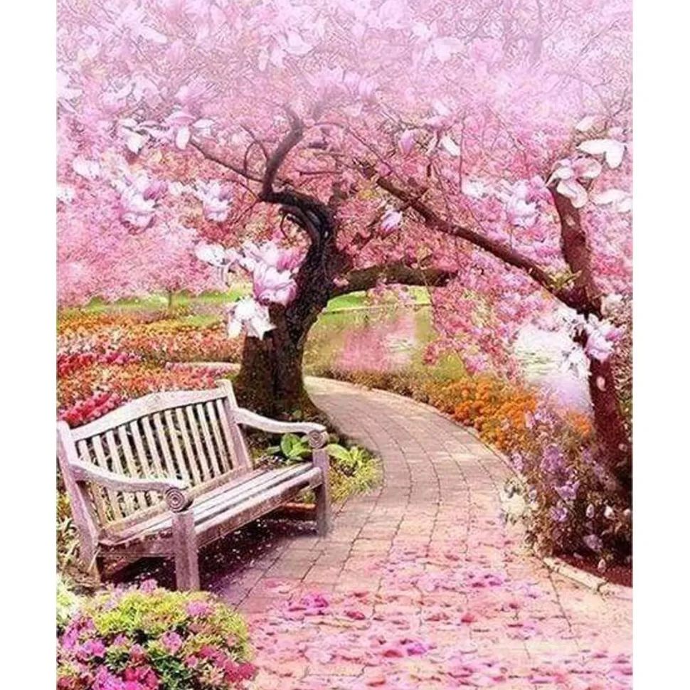 Caractéristiques détaillées : Broderie diamant : Chemin de Printemps – sans chassis en bois