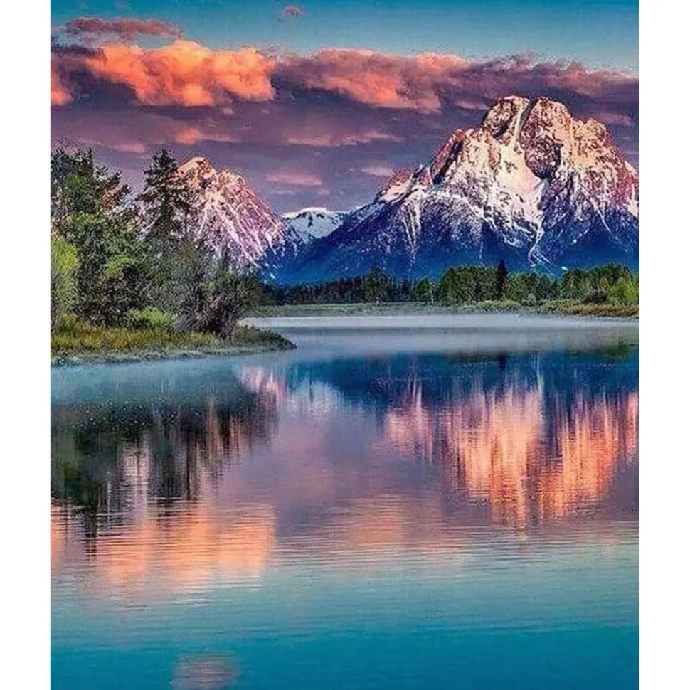 Description du produit : Broderie diamant : Paysage de Montagne et Lac – sans chassis en bois