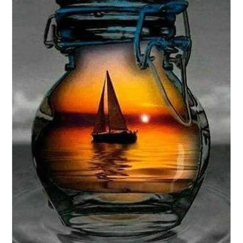 Caractéristiques détaillées : Broderie diamant : Pot et voilier – sans chassis en bois