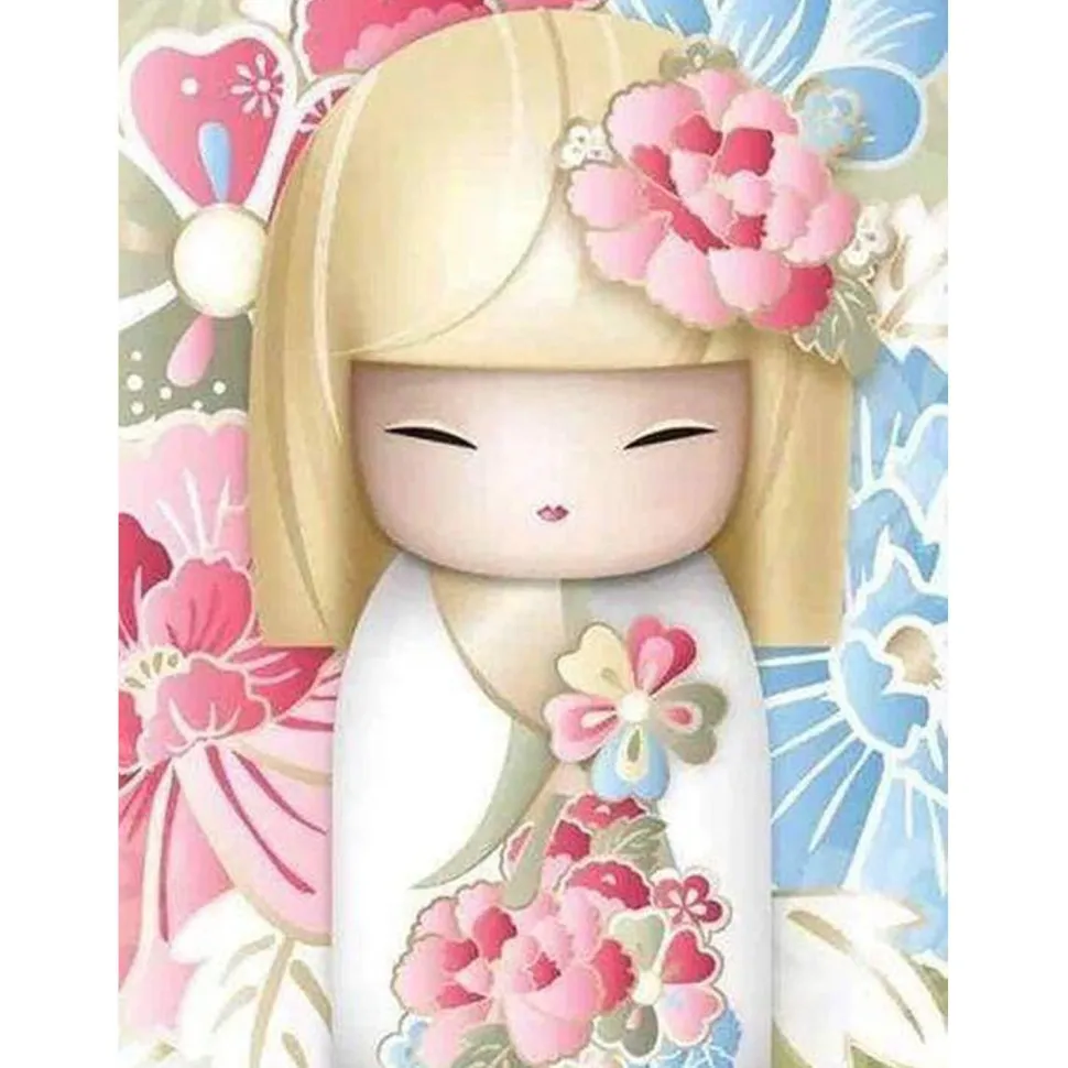 Description du produit : Broderie diamant : Poupée asiatique – sans chassis en bois