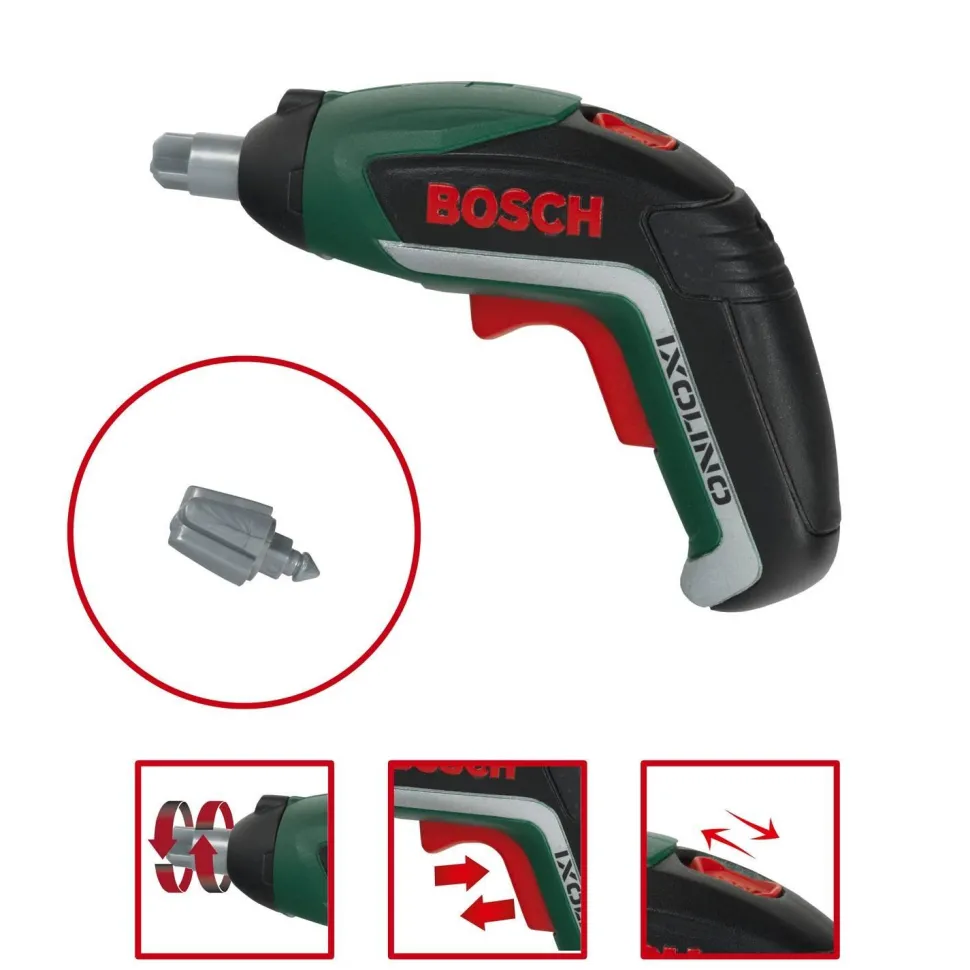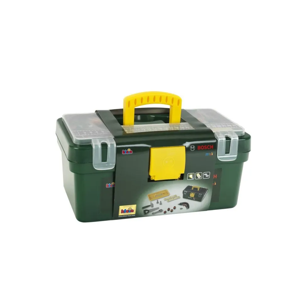 De nouveaux petits bricoleurs en herbe arrivent grâce à la caisse à outils de la célèbre marque Bosch !Dans la peau d’un vrai bricoleur, l’enfant dispose d’une belle mallette contenant de nombreux outils Bosch. Compartimenté, la caisse, facilite le rangement des outils qui se transporte partout grâce à sa poignée.La visseuse Ixolino Bosch fonctionne avec des piles et imite à merveille le modèle Bosch dont elle s’inspire. Pleine d’outils divers pour s’amuser, les enfants vont adorer jouer avec cette mallette et s’imaginer bricoler comme des professionnels.Caractéristiques :- Mallette à Outils Bosch avec Compartiments et Visseuse – Avec 1 visseuse Ixolino- Livré avec divers outils (vis, écrous, plaques, scie, marteau…)- Fonctionne avec piles AAA 1.5 V non incluses- Coloris : VertJeu complet qui permet de développer la curiosité, l’imagination, la créativité et donc l’épanouissement personnel de l’enfant.
