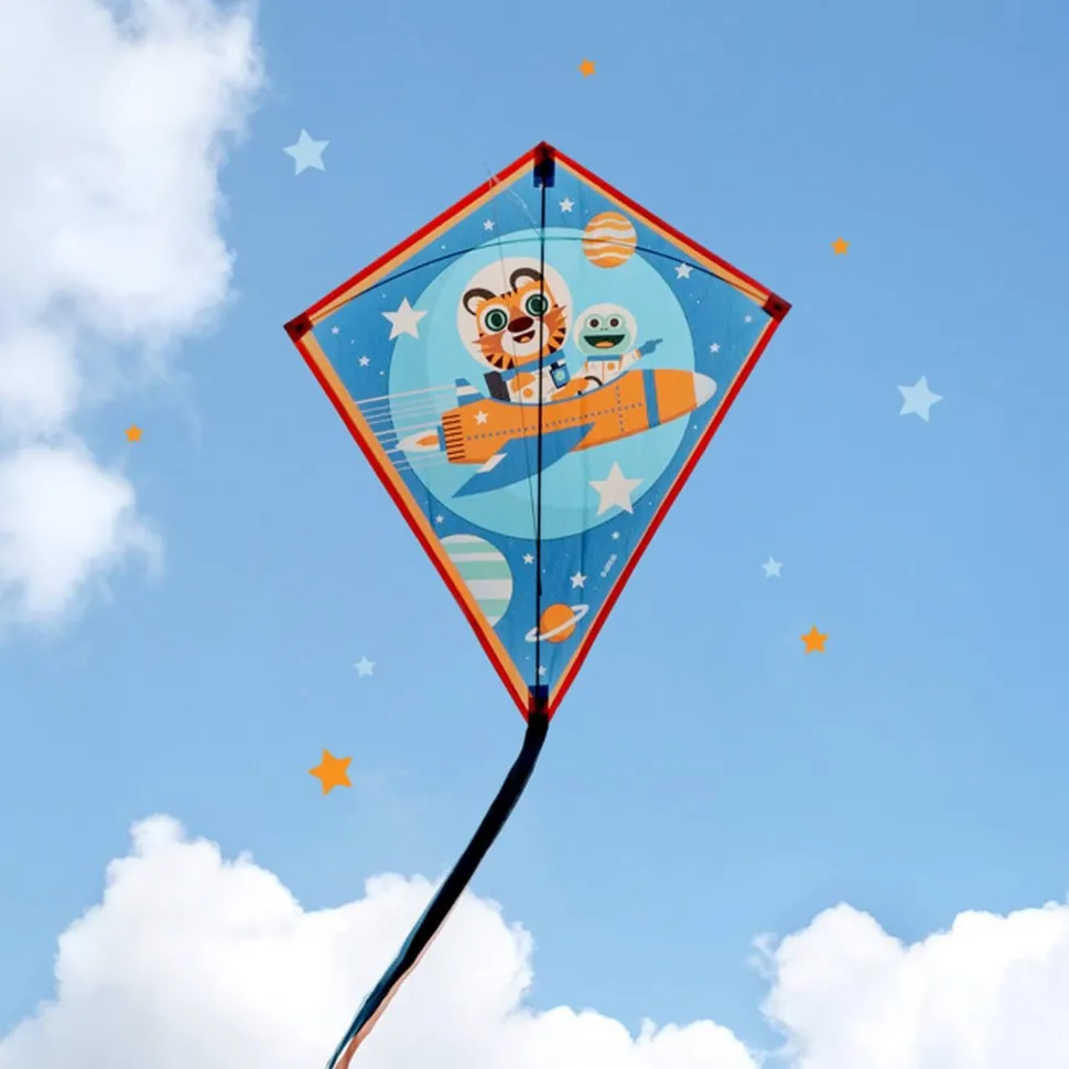 Découvrez le cerf volant Fusée de Djeco, un magnifique cerf volant illustré et coloré pour s’amuser avec le vent.
