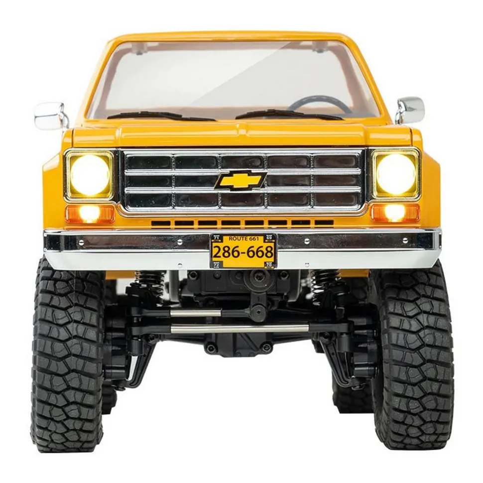 Deuxième modèle de la gamme FMS FCX18, le Chevrolet K10 est un concurrent de taille dans le domaine des petits véhicules à chenilles et rend hommage à l’héritage culturel, à l’innovation technologique et à la ténacité tout-terrain de la marque Chevrolet. Version jaune.