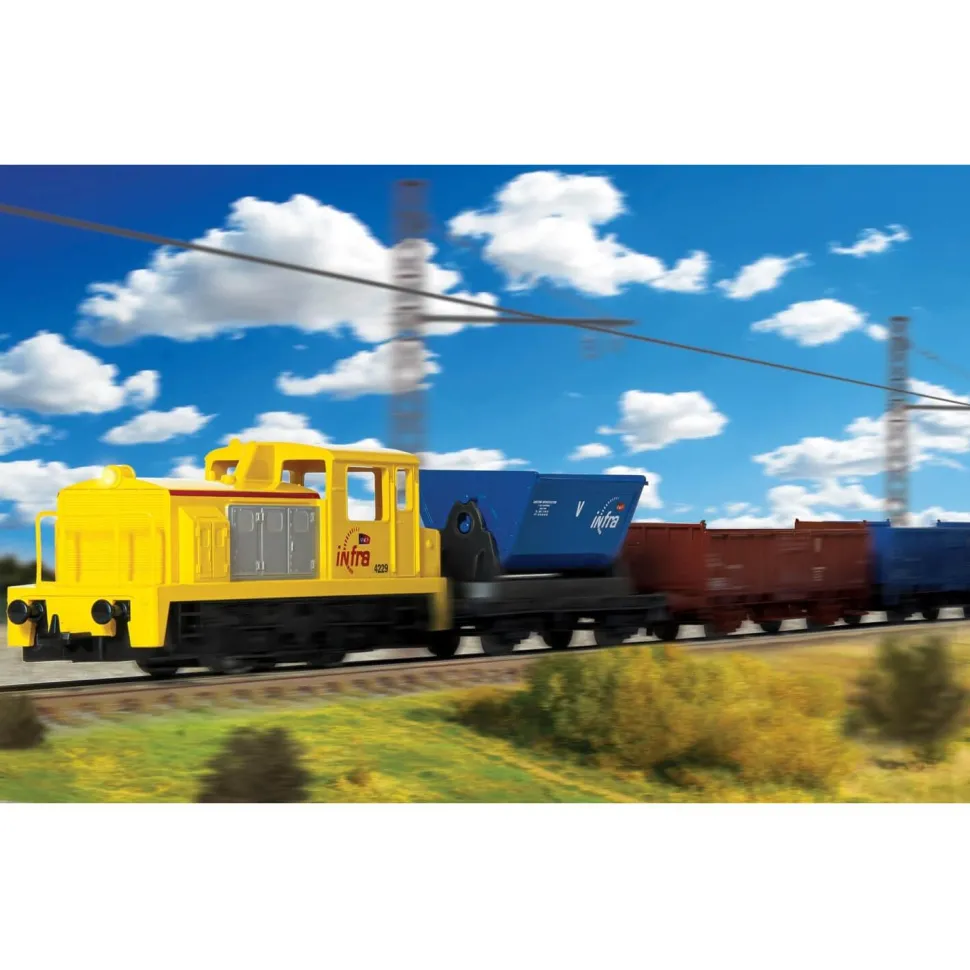 Ce set de départ permet de reproduire une ligne avec un train SNCF Infra et comprend pour cela une locomotive diesel à 2 essieux et un wagon benne avec 2 tombereaux, un régulateur de vitesse, un transformateur, un circuit de base avec un grand ovale de voies.