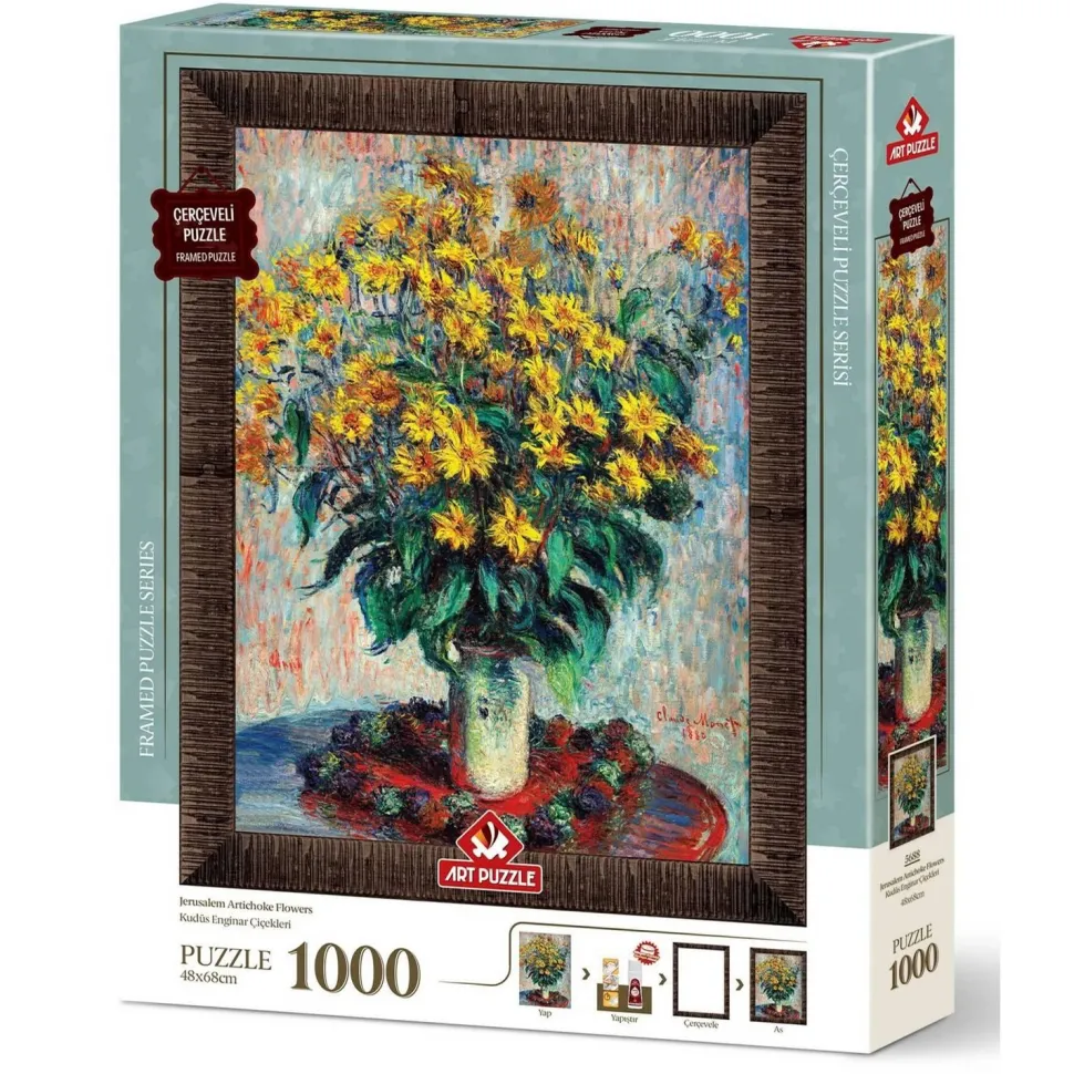 Caractéristiques détaillées : Coffret : Cadre, Colle et Puzzle 1000 pièces : Fleurs de topinambour de Claude Monet