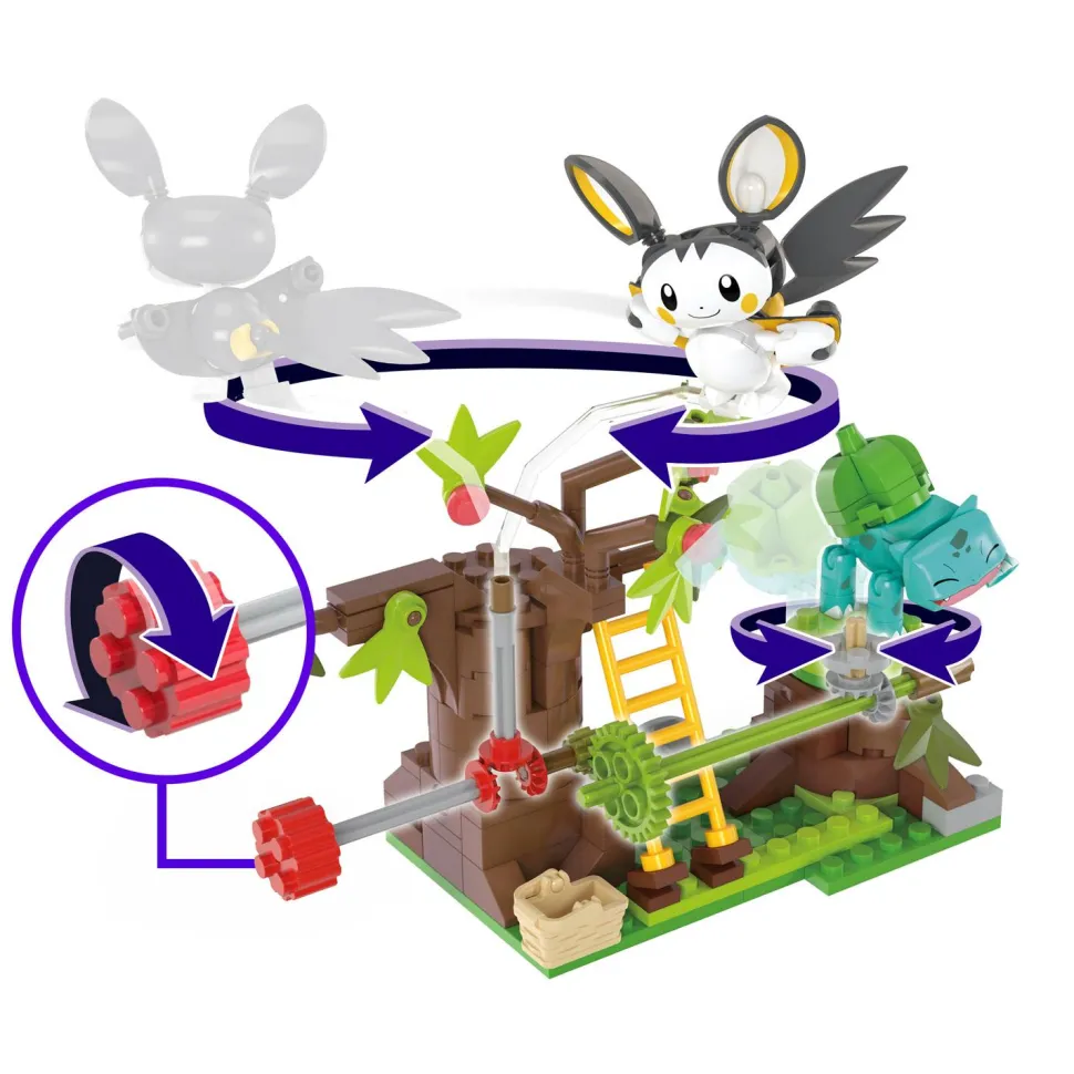 Prenez votre envol et récoltez des baies avec ce coffret de construction doté de la nouvelle brique de mouvement de la marque Mattel ! Regardez Emolga voler autour d’un arbre à baies tandis que Bulbizarre tourne en dessous. Combinez ce coffret à d’autres coffrets MEGA pour créer un monde Pokémon animé.À partir de 7 ans.