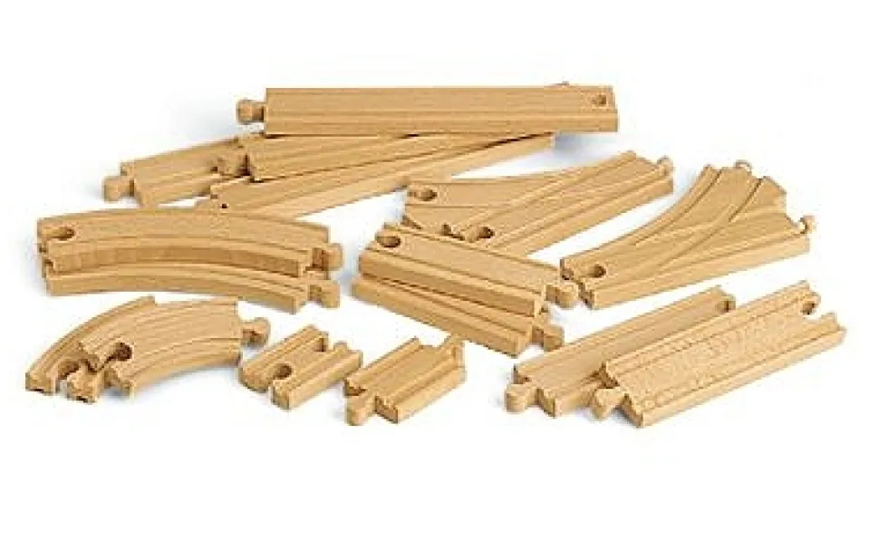 Coffret d’évolution Brio contenant 16 rails et aiguillages divers pour faire évoluer ses circuits.Contenu : – 4 rails droits 216 mm- 2 aiguillages courbes 144 mm- 2 petites courbes 90 mm- 2 rails moyens droits 144 mm- 2 rails courts droits 108 mm- 2 grands rails courbes 170 mm- 1 mini rail droit mâle/mâle 54 mm – 1 mini rail droit femelle/femelle 54 mmCe coffret avec des rails en bois de qualité se révèle être indispensable pour prolonger le circuit de votre enfant. Avec ces rails, votre petit pourra agrandir son circuit avec des virages, des croisements ou encore de grandes trajectoires droites. Les trajets que le train accomplira seront plus longs et plus intéressants. Votre enfant s’amusera grâce à ce coffret d’évolution et sa chambre deviendra un grand terrain de jeu pour son circuit !