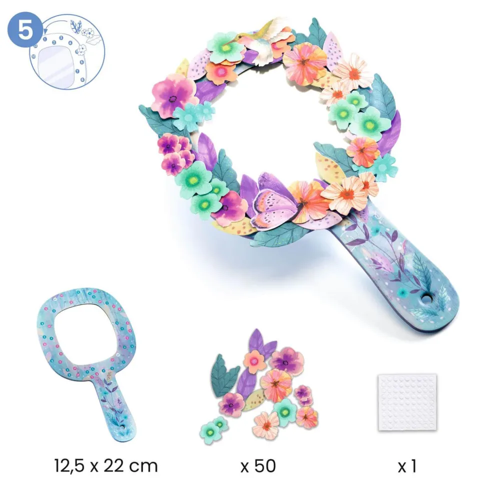 – 1 joli miroir à enrichir, couche après couche, de décorations papier qui lui apporteront un joli volume.