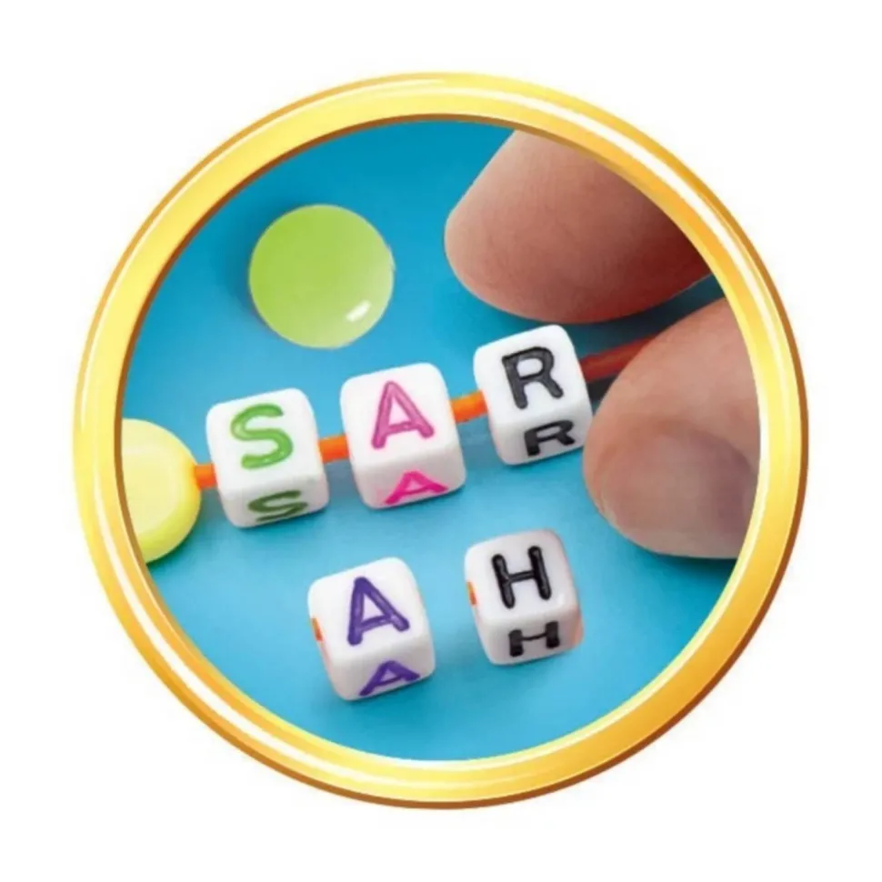 Contenu : cordons élastiques, perles avec lettres et perles décoratives.
