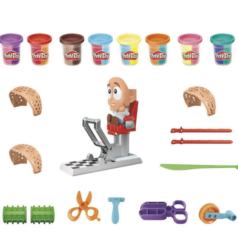 Tous les styles sont les bienvenus au salon de coiffure Play-Doh ! Ce salon de coiffure jouet pour enfants (à partir de 3 ans) permet de jouer au coiffeur de plusieurs façons et de donner au « client » une coiffure des plus extravagantes. On peut ajouter de la pâte à modeler à volonté pour avoir les cheveux les plus longs possible. On peut changer la forme et l’épaisseur des cheveux factices grâce aux différentes « têtes ». Les 8 pots de 56 g de pâte à modeler tricolore offrent une grande variété. Les enfants vont adorer utiliser les ciseaux Pour jouer et le rasoir factice pour couper encore et encore les cheveux du « client ». Inspiré du jouet classique Le coiffeur, ce coffret Play-Doh est le cadeau idéal pour un anniversaire, les fêtes ou toute autre occasion. Hasbro, Play-Doh et toutes les marques associées sont des marques de commerce de Hasbro.