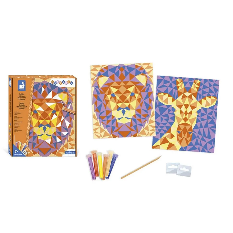 Découvrez le coffret sable sur le thème des Animaux de la savane pour réaliser 2 tableaux de la marque Janod.