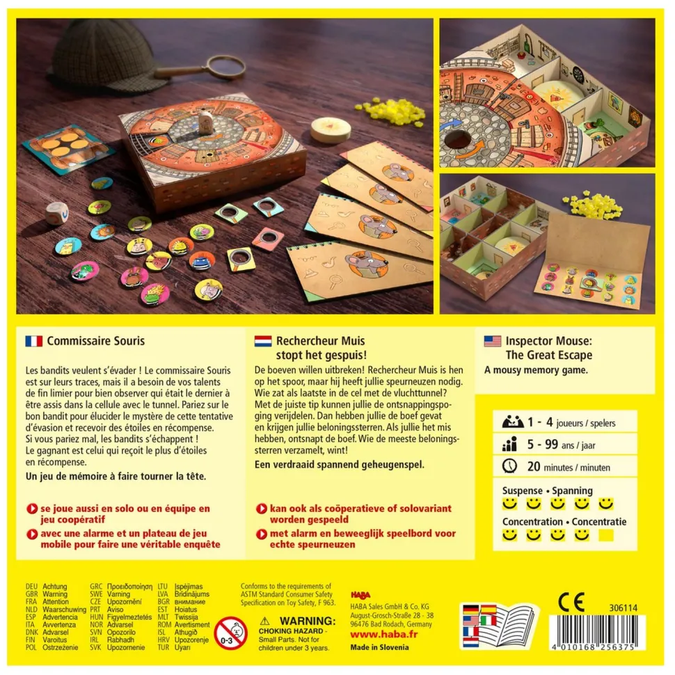 Les bandits veulent s’évader ! Le commissaire Souris est sur leurs traces. Mais il a besoin des talents de fin limier des joueurs : qui s’est assis en dernier dans la cellule avec le tunnel ? Si les joueurs parient sur le bon bandit, ils élucident le mystère de cette tentative d’évasion et attraperont les bandits. Le gagnant est celui qui capture le plus de fugitifs.