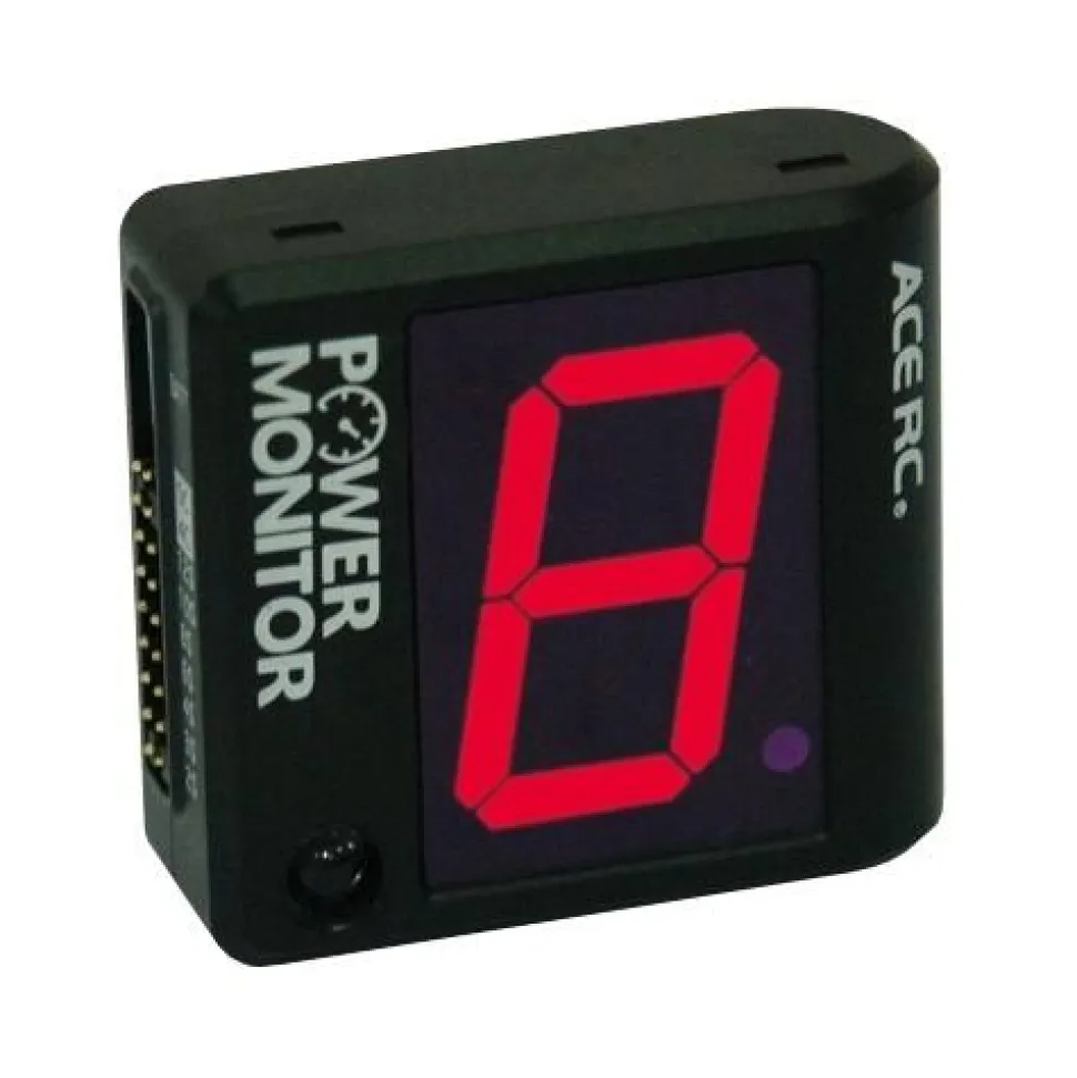 Controleur de capacité Ace RC. Ce contrôleur de capacité, est un appareil qui surveille et indique la charge restante dans votre accu lipo ainsi que dans les batteries NiMH en temps réel. Il est muni d’un affichage numérique de grande, vous n’avez pas besoin de vérifier et de mesurer la tensions de vos accus au sol.