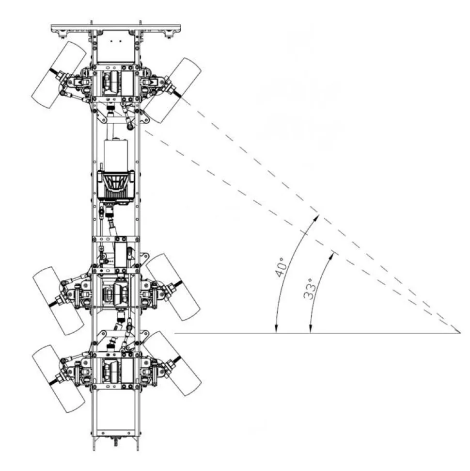 Un servo pignons métal de 17kg de couple minimum est nécessaire à la direction ainsi que la radio-commande dont le nombre de voies dépend des équipements que vous désirez contrôler.