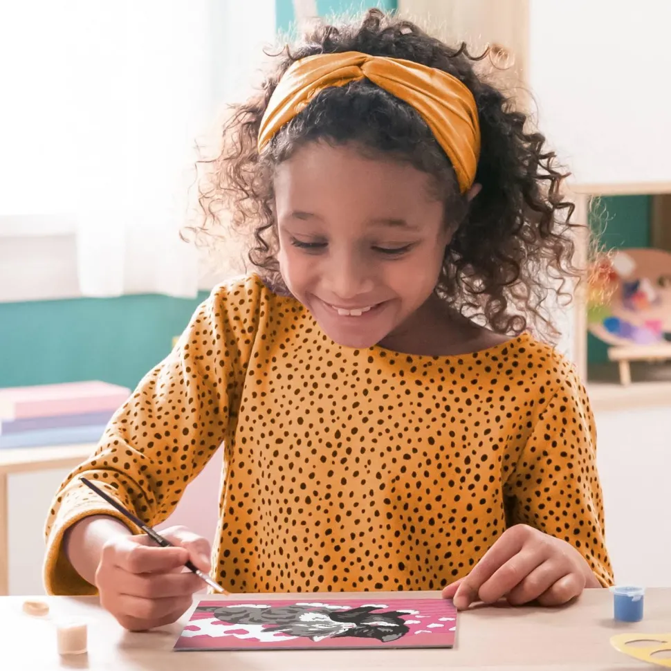 Contenu : un tableau, 6 pots de peinture, un pinceau, un modèle et un beau cadre.