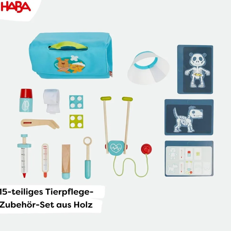 Ce set offre tout ce dont les petits amoureux des animaux ont besoin pour les urgences animales. Avec une mallette de docteur complète les enfants peuvent se glisser dans la peau d’un vétérinaire. Que ce soit pour retirer les puces du chien à l’aide d’une pince à épiler, soigner la patte du chat ou regarder des radiographies, le kit inspire des jeux de rôle créatifs et réalistes. Les accessoires originaux pour les soins des animaux sont fabriqués en bois robuste et garantissent un plaisir réaliste et durable. Grâce à son sac portable, l’équipement est idéal pour une utilisation mobile ou pour s’amuser dans le cadre de jeux créatifs. Un cadeau idéal pour les petits amoureux des animaux.
