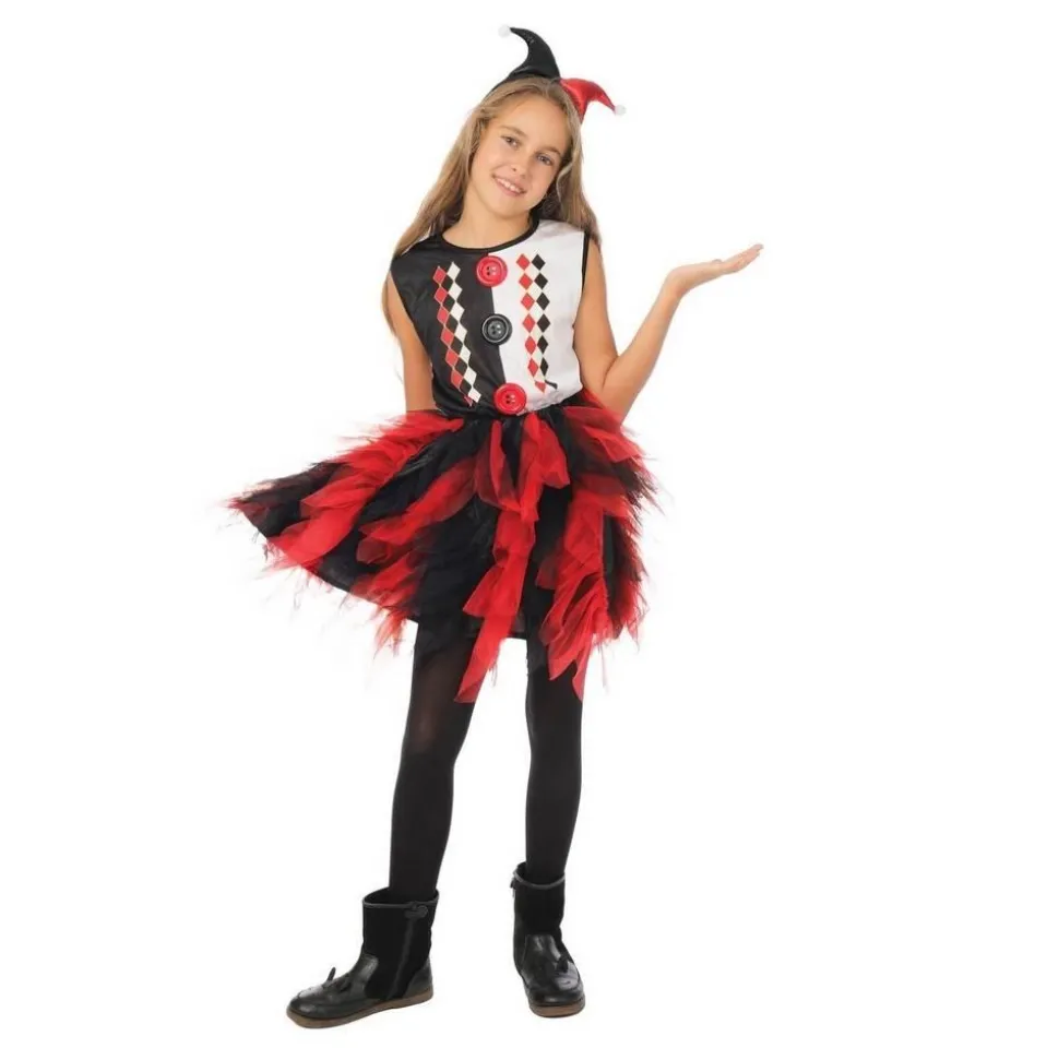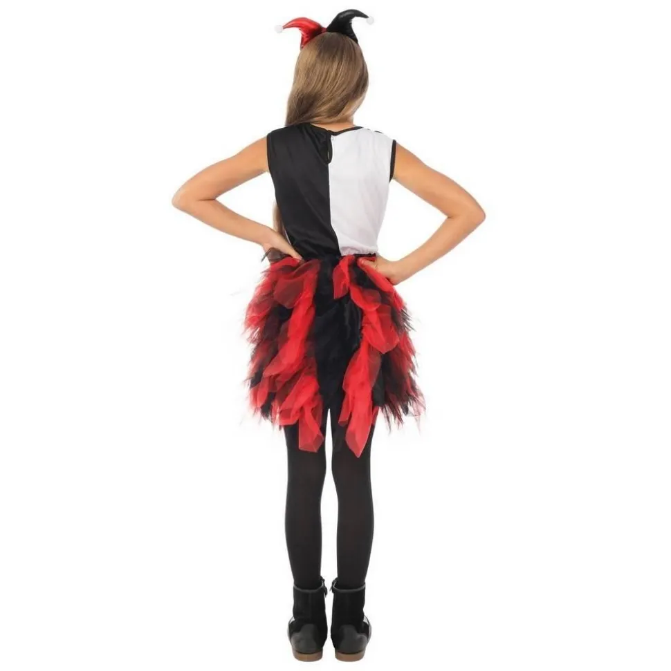 Description du produit : Déguisement arlequin avec froufrou noir, rouge – Fille