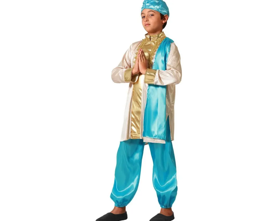 Parfait pour les fêtes à thème, les événements multiculturels, ou même des célébrations comme Diwali, ce costume permet à un enfant de se plonger dans la richesse de la culture indienne tout en s’amusant avec des couleurs et des motifs somptueux.