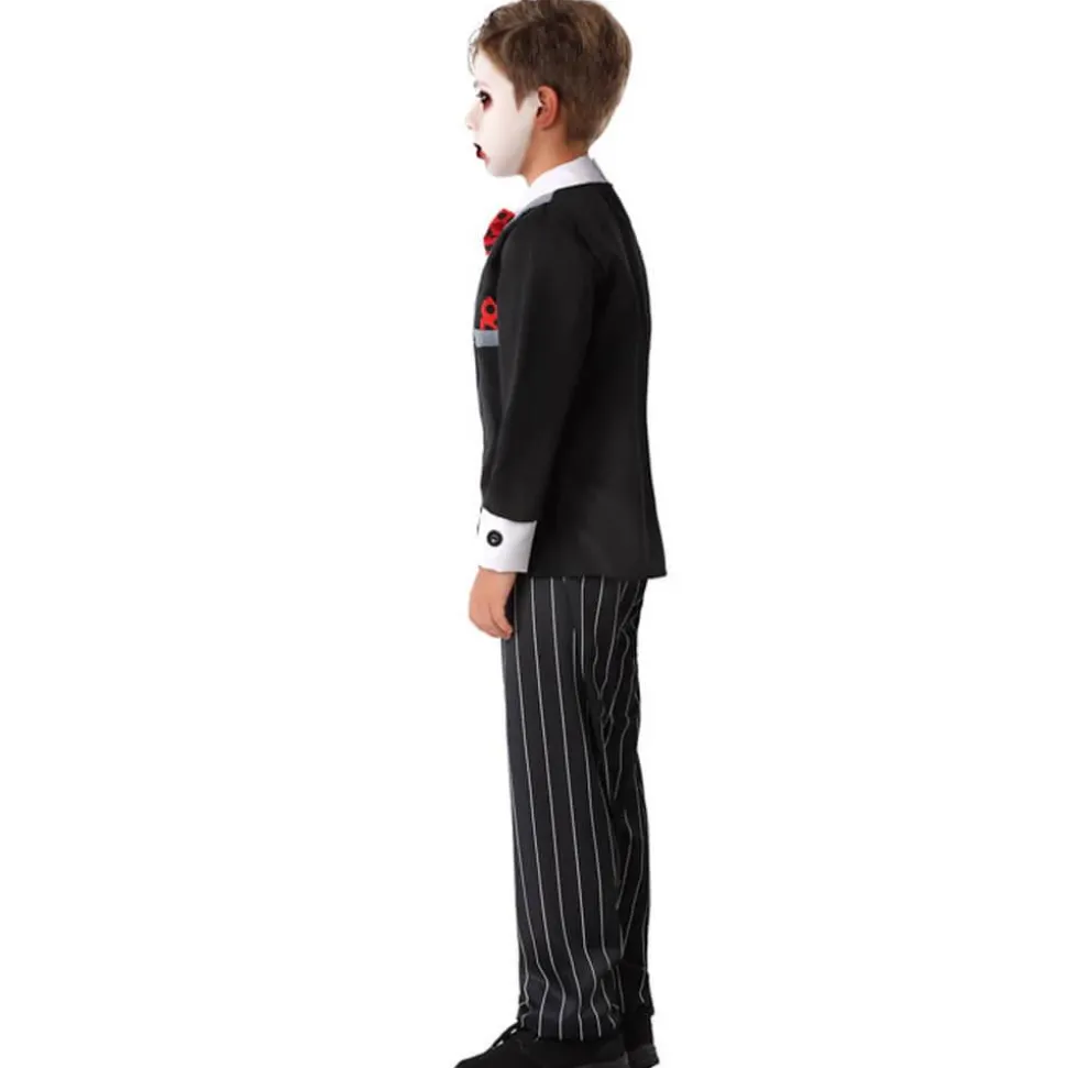 Votre enfant pourra incarner un personnage d’Halloween effrayant rappelant les poupons en bois grâce à ce déguisement pour garçon.