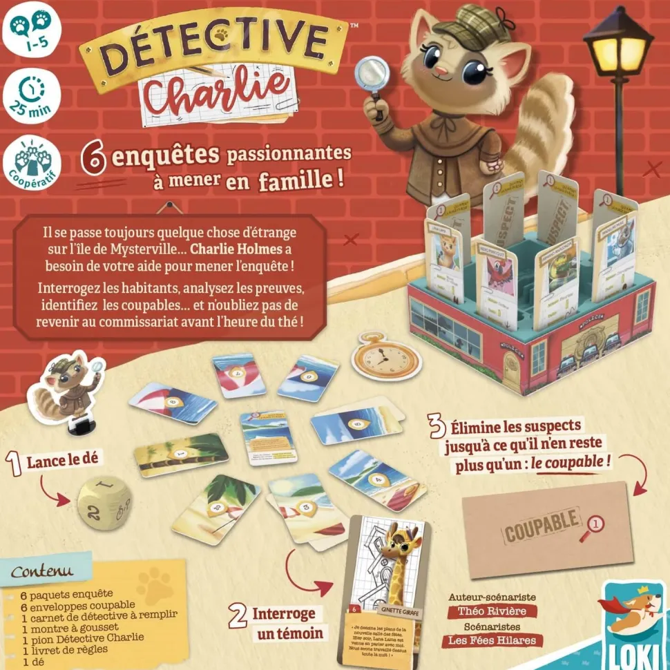 Il se passe toujours quelque chose d’étrange sur l’ile de Mysterville… Charlie Holmes a besoin de votre aide pour mener l’enquête ! Interrogez les habitants, analysez les preuves, identifiez les coupables… et n’oubliez pas de revenir au commissariat avant l’heure du thé !