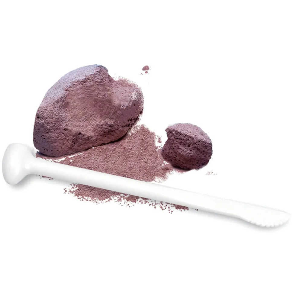 Pour cela, grattez doucement le bord du plâtre avec le coté aplati de l’outil d’excavation. Lorsque la dent phosphorescente de requin est visible au travers du plâtre, retirez le plâtre avec précaution. Pour éviter d’endommager la dent de requin, retirez tout le plâtre qui l’entoure avant de l’extraire.