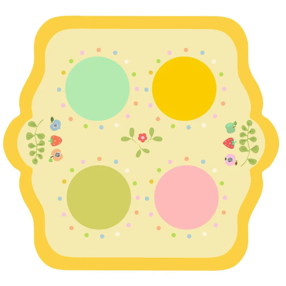 L’enfant dresse la table, place les gâteaux sur les plateaux et les décore (modèles suggérés). Chaque set de table est imprimé pour aider l’enfant à positionner chaque élément à sa place.