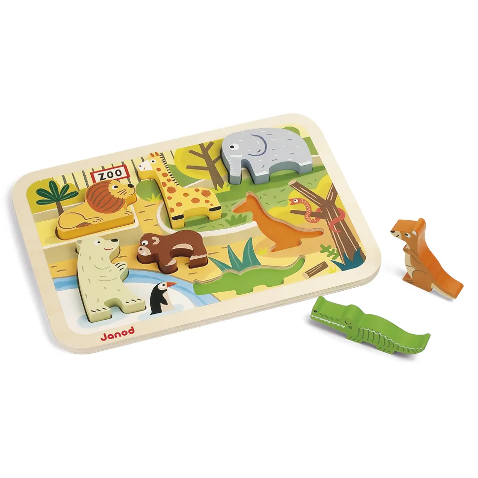 Description du produit : Encastrement 7 pièces en bois : Chunky Puzzle Zoo