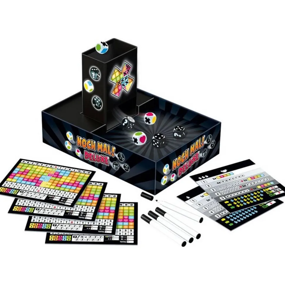 Envie d’un jeu simple à comprendre, rapide à mettre en place et incroyablement addictif ? Encore ! Deluxe de la marque Schmidt est fait pour vous. Dans cette version enrichie du célèbre jeu de dés, vous retrouverez tout ce qui a fait le succès du jeu original… avec encore plus de contenu et de possibilités !