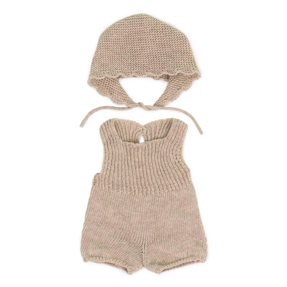 Cet ensemble de vêtements tricotés pour poupées de 38cm et de la marque Miniland est parfait pour compléter votre collection de vêtements pour poupées. Contient : 2 pièces (grenouillère et bonnet). Convient aux enfants de 3 à 6 ans. Dimensions : 38cm.