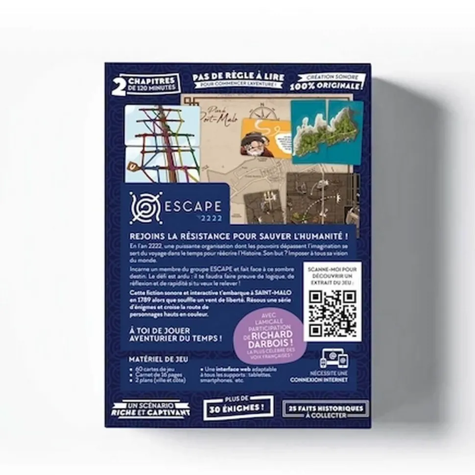 Escape 2222, c’est un jeu d’escape entrainant et qui saura faire le plus grand bonheur des enquêteurs comme vous ! A travers un grand nombre d’énigmes, plongez-vous dans l’univers d’une des villes emblématiques de Bretagne ! A partir de 10 ans, chacun devra mettre sa main à la patte afin de dénicher les différentes énigmes pour réussir à sauver le professeur Constant et de retrouver la Déclaration des droits de l’homme et du citoyen ! De 1 à 6 joueurs, vous devrez faire équipe seul ou à plusieurs et résoudre les différentes énigmes à Saint-Malo !