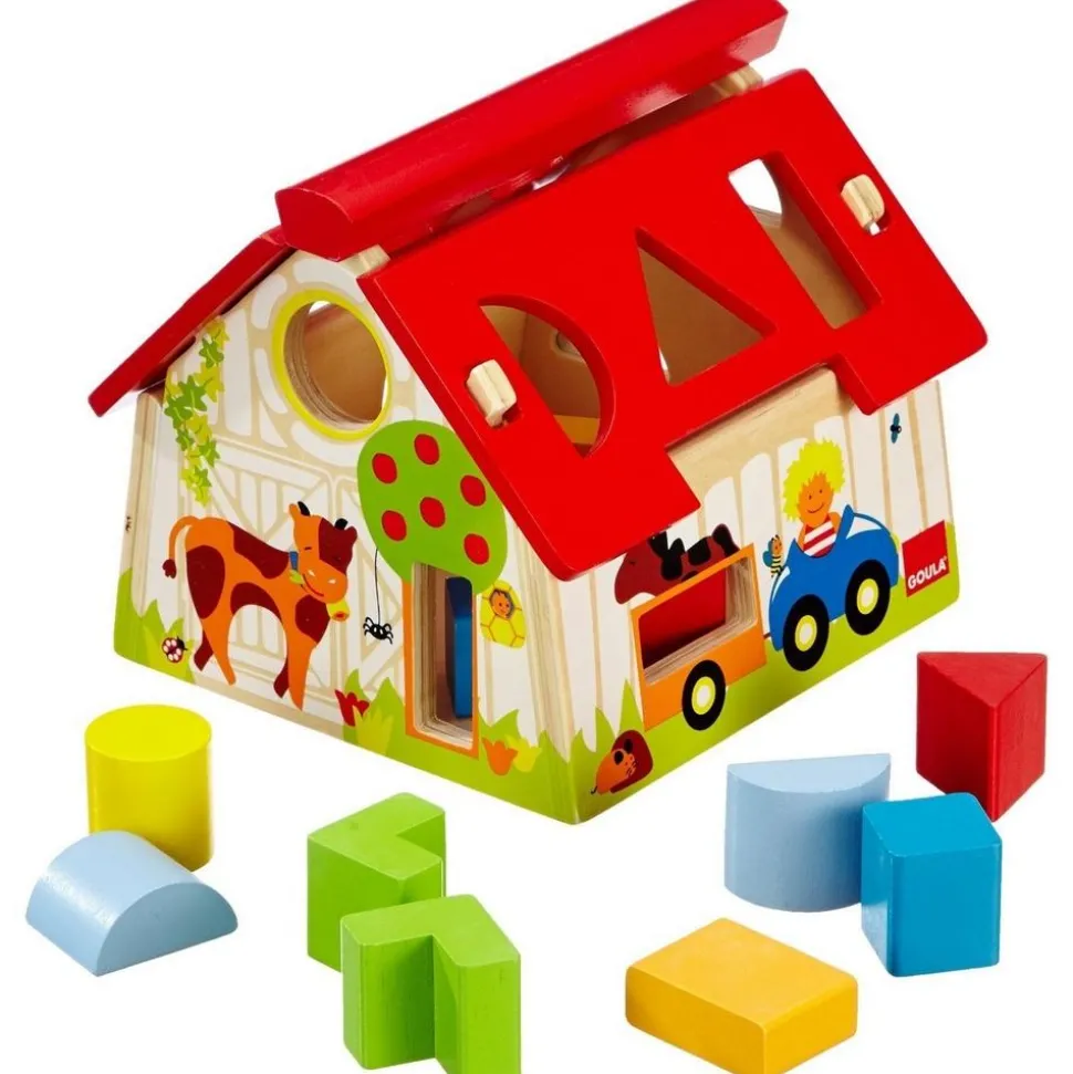 Une jolie ferme, boîte à formes illsutrée et colorée pour apprendre aux tout-petits à reconnaître les formes et les couleurs tout en développant leur motricité fine.