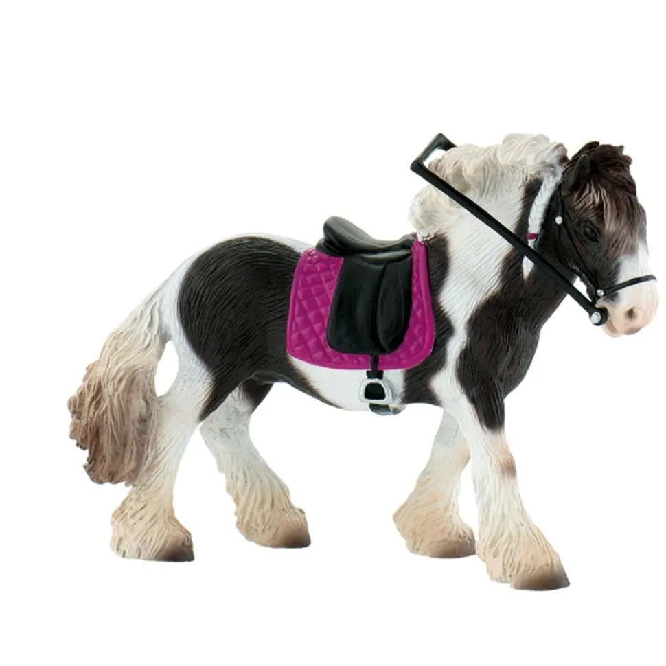 Ce cheval est une race équipe provenant d’îles Britanniques. Il était utiliser pour tracter de lourde charge comme des roulottes. Le Tinker est un cheval très reconnaissable grâce à son apparence trapue, sa petite taille et sa robe très souvent pie. Il a un port de tête relevé et fier. Son caractère est doux et amical, il est un compagnon idéal pour l’homme et même pour les autres animaux. Il est devenu un cheval de loisir familial, il se prête très bien à l’équitation en centre équestre mais aussi pour les spectacles. Il est également un partenaire précieux en équithérapie.Figurine de jument tinker d’environ 14 cm de long, dont les rênes articulées peuvent se relever et redescendre légèrement. Très réaliste, cette figurine ravira à la fois les collectionneurs et les enfants souhaitant découvrir l’univers des chevaux. Peinte à la main et garantie sans PVC, elle répond aux meilleurs standards de qualité et de sécurité. Matériau(x) utilisé(s) : plastique (garanti sans PVC). Ce produit a obtenu un Spiel Gut Award (récompense qui distingue les jeux et jouets présentant un réel intérêt ludique et pédagogique, et certifie leur qualité et leur sécurité).