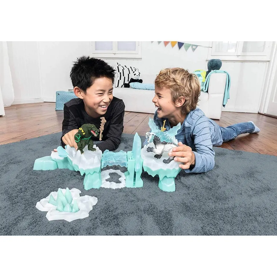 Découvrez les figurines Attaque de la forteresse de glace de la collection Eldrador. des obstacles sournois, un solide pont-levis et une cachette secrète attendent le crocodile de combat du monde de la jungle dans les profondeurs des glaces.